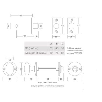 Frank Allart 0526B/PBU insteekgrendel voor toilet en badkamer deur met draaiknop inclusief sluitplaat, doornmaat 45 mm. Op de tekening ‘B’.