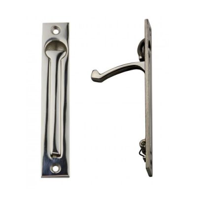 Frank Allart 4380 schuifdeurtrekring, die door een veer bij loslaten meteen terugkeert naar de gesloten positie. Afmeing voorplaat 120 x 20 mm inbouwdiepte 36 mm