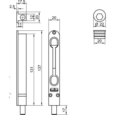Habo 8312 kantschuif met ronde hoek, 140 x 20 mm inclusief sluitpot.