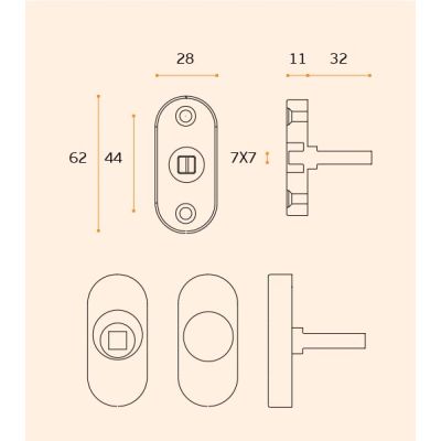 JNF DKB ovale raamkruk mechaniek met afdekrozet afsluitbaar doormiddel van vierkant sleutel, lengte stift 7 x 32 mm.