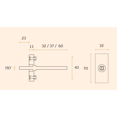 JNF IN.DKQ.37 raamkruk mechaniek met rechthoekige rozet, met 4 standen, op deze mechaniek passen alle JNF RVS deurkrukken, lengte stift 7 x 37 mm