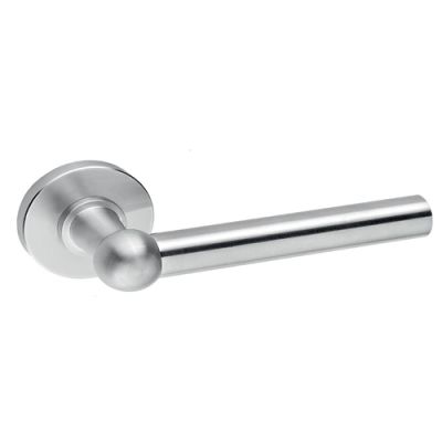 JNF IN.00.227 Train deurkruk L model RVS, inclusief ronde krukrozetten met veer systeem. Is ook mogelijk om combinatie L model en T model deurkruk Te bestellen