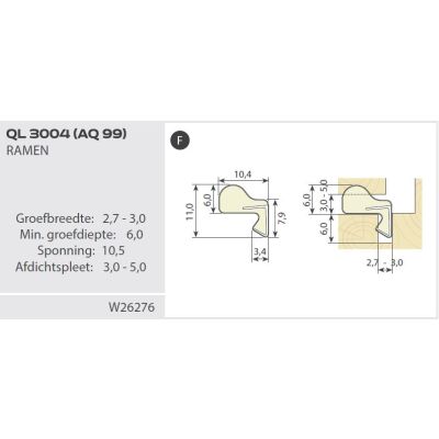 Groefbreedte: 2,7 – 3,0 mm