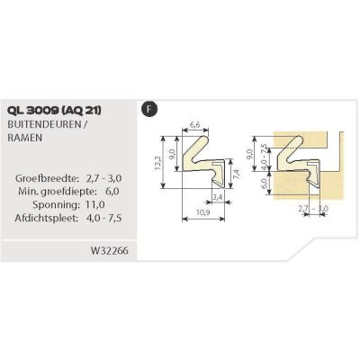 Groefbreedte: 2,7 – 3,0 mm
