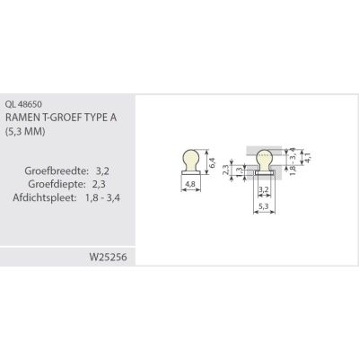 T-groefprofiel, kunststof en aluminium toepassing, voetbreedte 4,8 mm