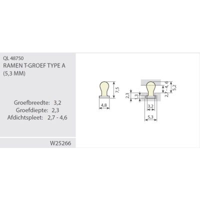 T-groefprofiel, kunststof en aluminium toepassing, voetbreedte 4,8 mm
