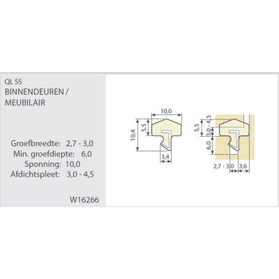 Groefbreedte: 2,7 – 4,5 mm