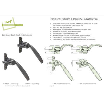 SWF B158 Curved Classic raamboom is afsluitbaar met sleutel en heeft een montageplaat met 4 schroefgaten.