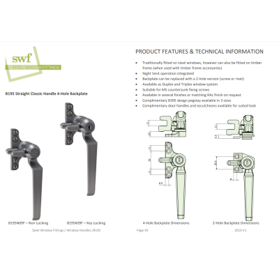SWF B195 Straight Classic raamboom is afsluitbaar met sleutel en heeft een montageplaat met 4 schroefgaten.