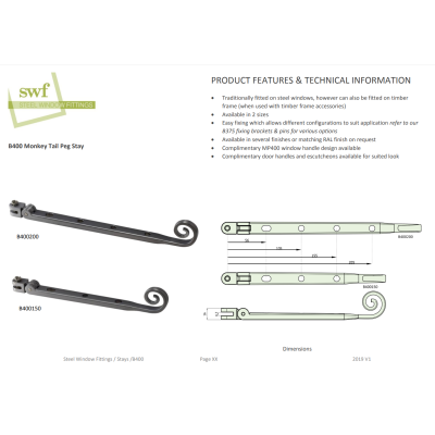 SWF B400 Monkey Tail raamuitzetter, 200 mm, chroom mat